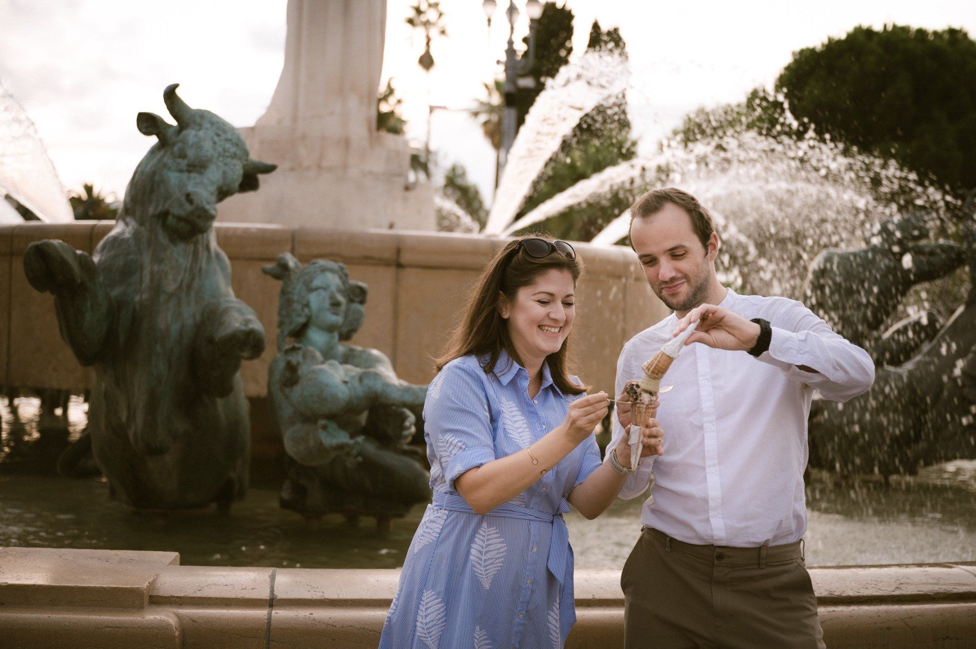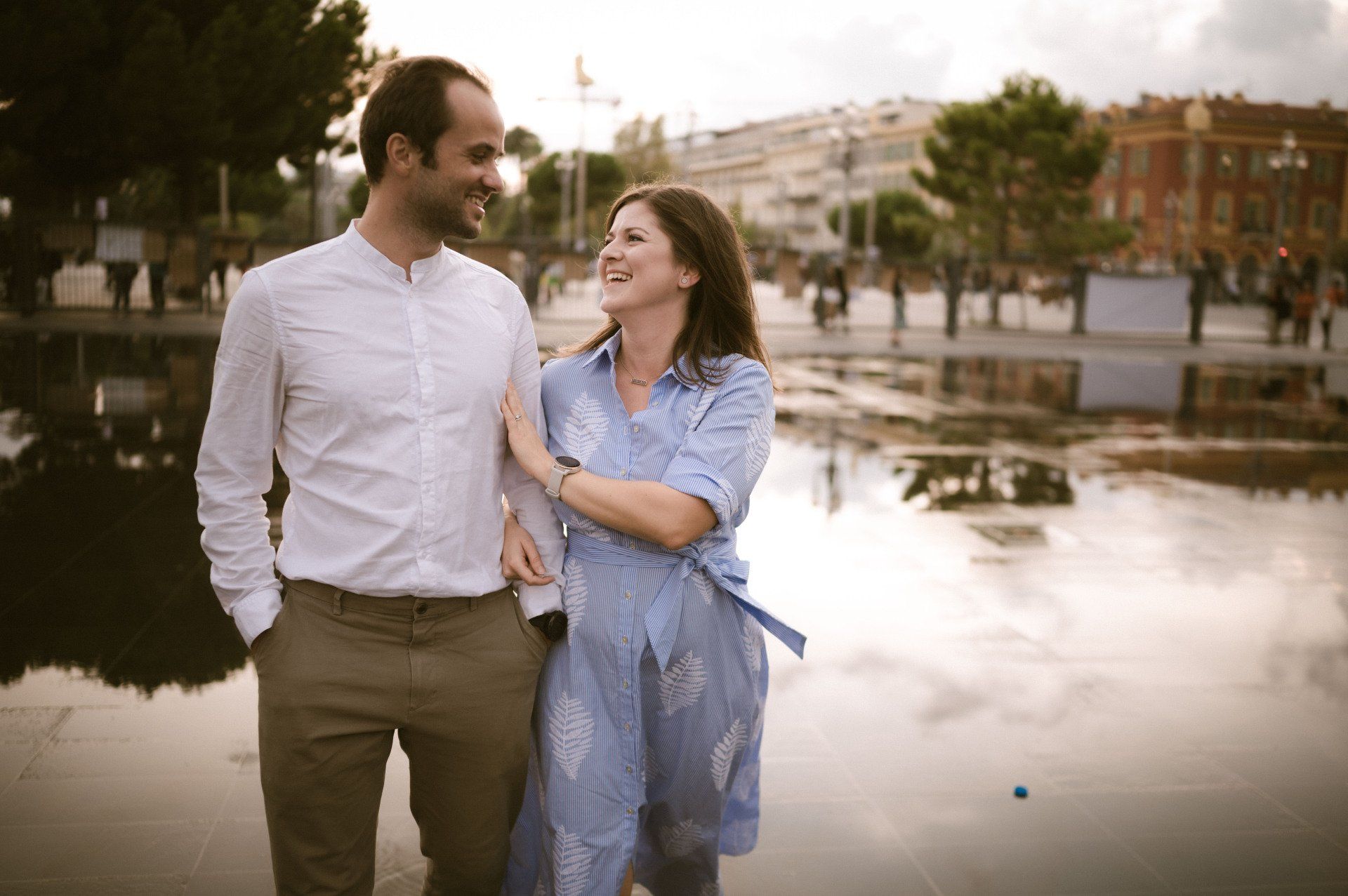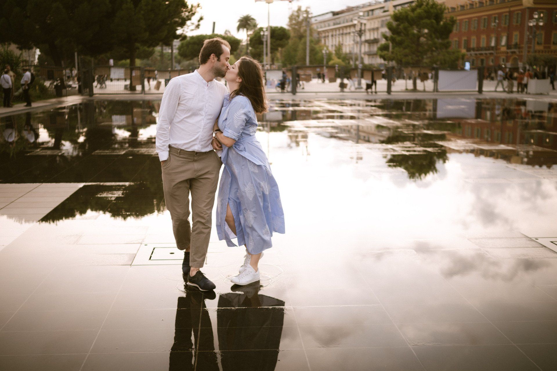 Nous voulions terminer notre séance photo par de belles photos de coucher de soleil sur la Promenade des Anglais, mais malheureusement le soleil a disparu derrière un nuage avant que nous en ayons l'occasion. Mais heureusement, le manège de la place Garibaldi a fourni la toile de fond parfaite pour quelques photos romantiques du soir.