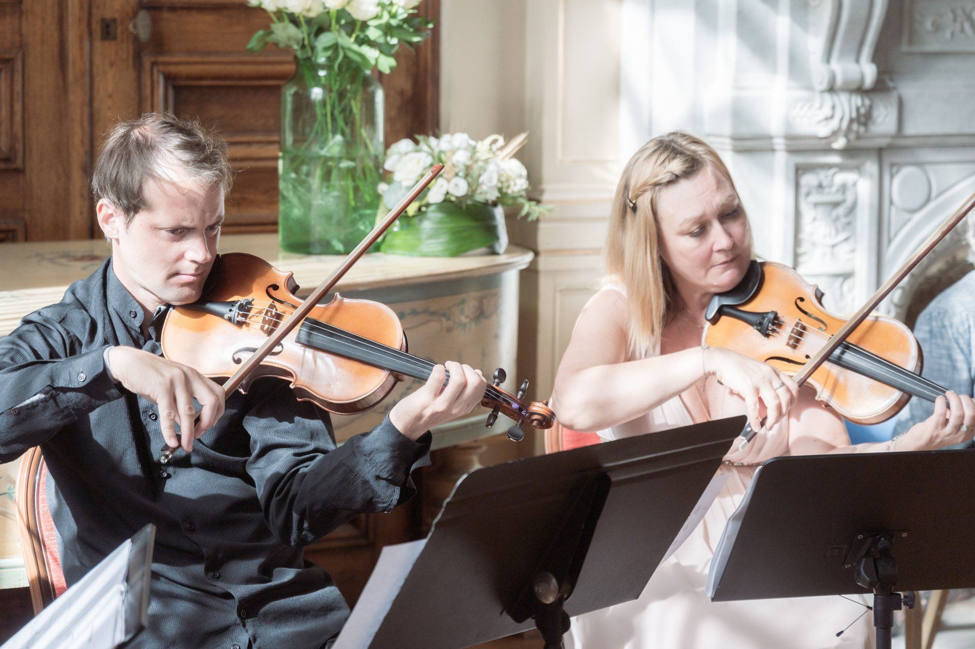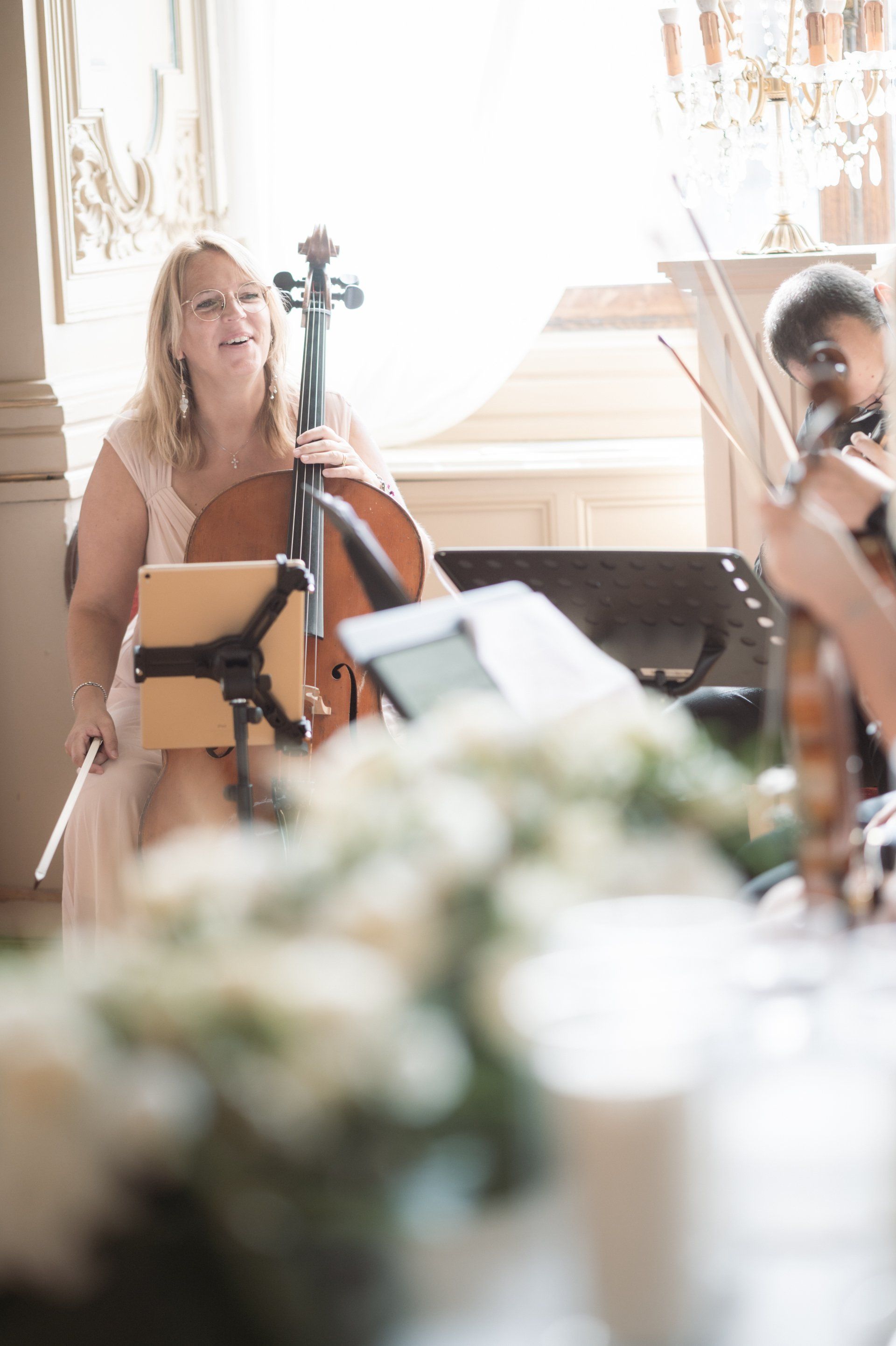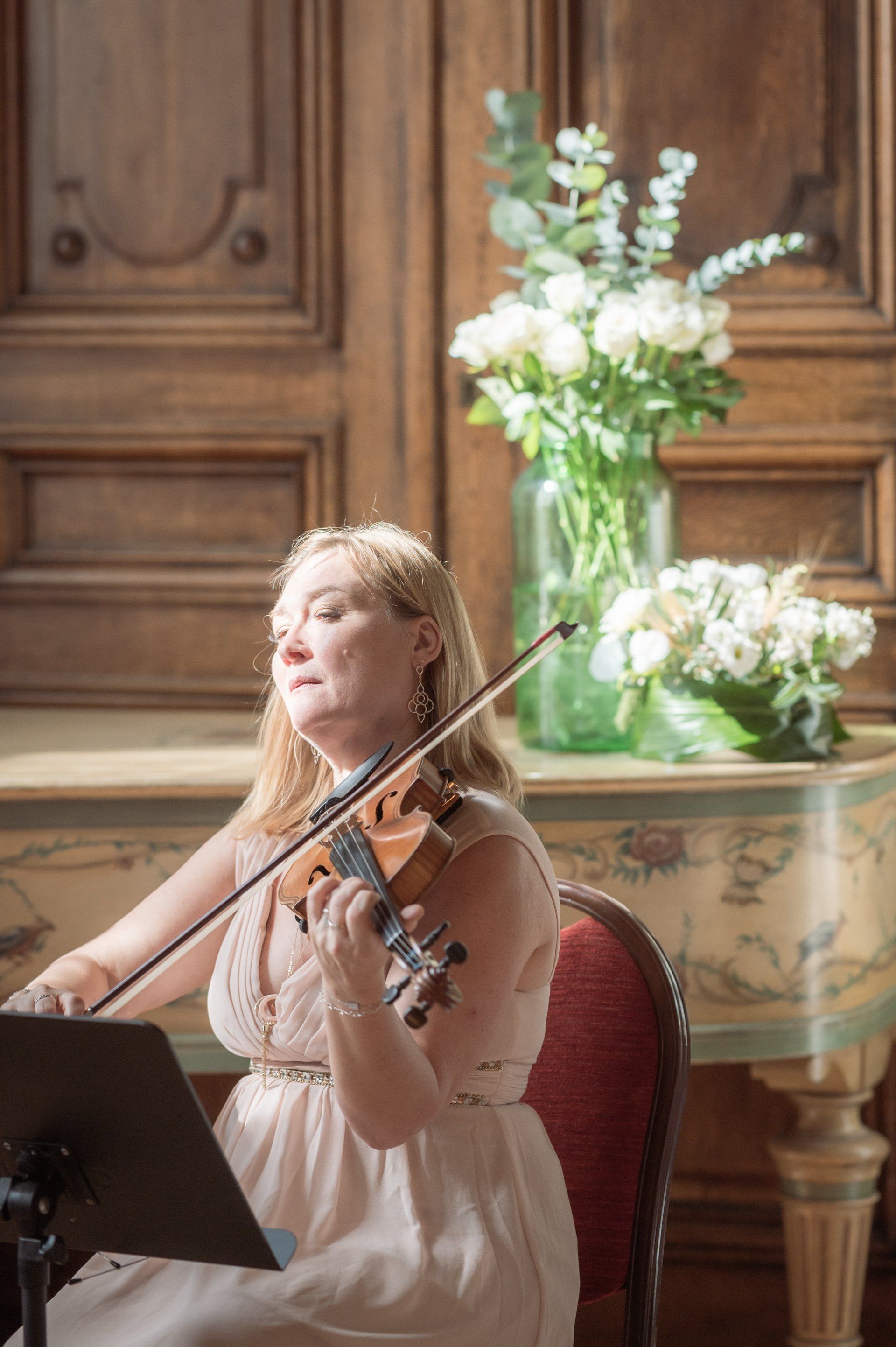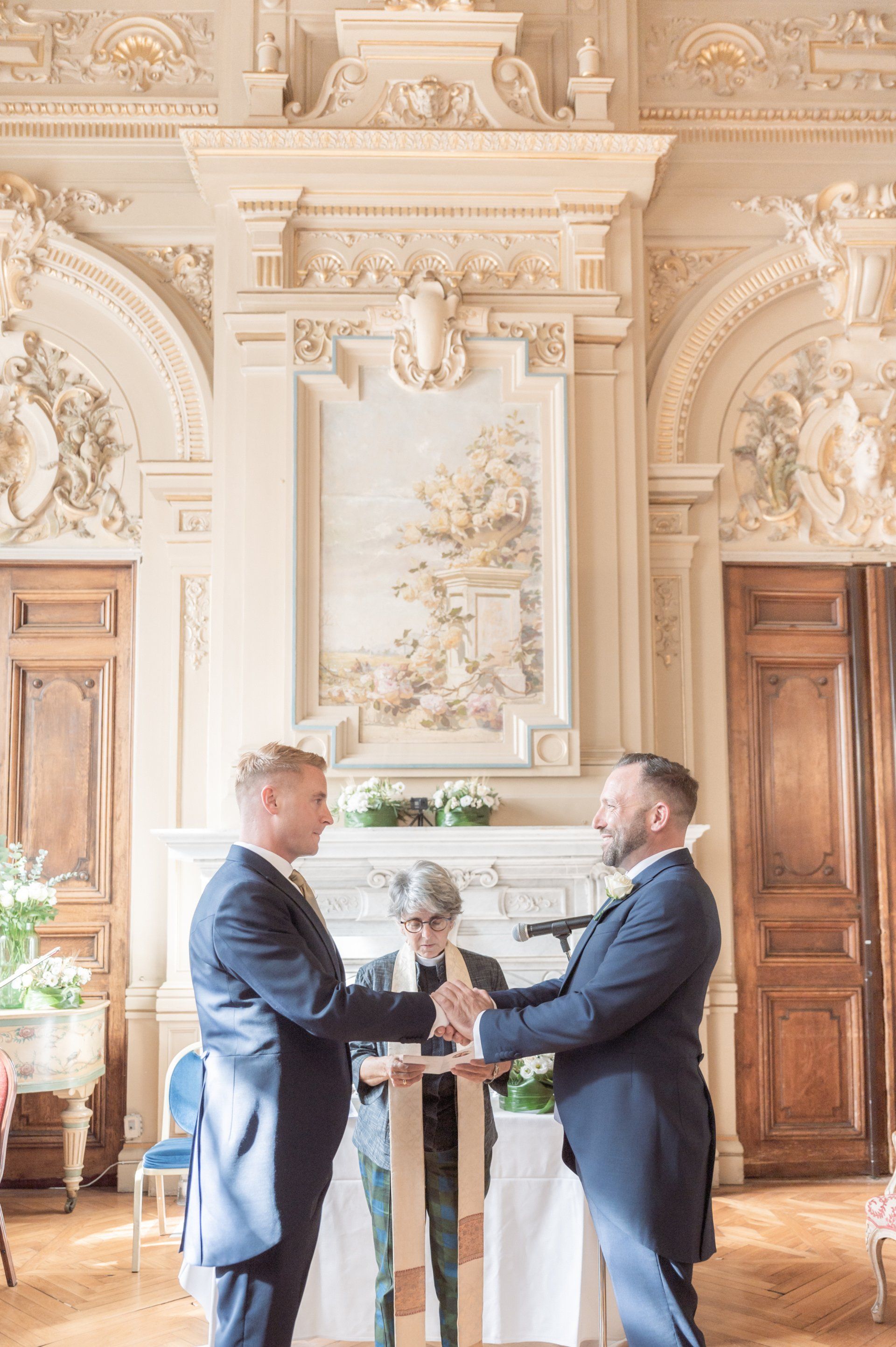 Inside are rooms adorned with fresco paintings and exquisite wood-carved décor, the calm ambience of which contrast markedly with the bustling promenade outside. It's the perfect setting for wedding ceremonies and this particular ceremony at benefited from a fabulous string quartet, amazing flowers, and three particularly beautiful rooms, one each for the ceremony, cocktail hour, and dinner.