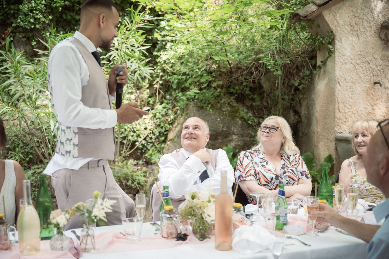 Although near to Nice and the Côte d'Azur, Le Foulon is flanked by the spectacular mountainous countryside of the Alps, and when you're there you really do feel like you're isolated in the beautiful French countryside. For this English wedding, most of the guests came from Kent in the UK, while the bride and groom, who live in France, had no trouble finding excellent local suppliers for flowers, hair and make-up for the guests.