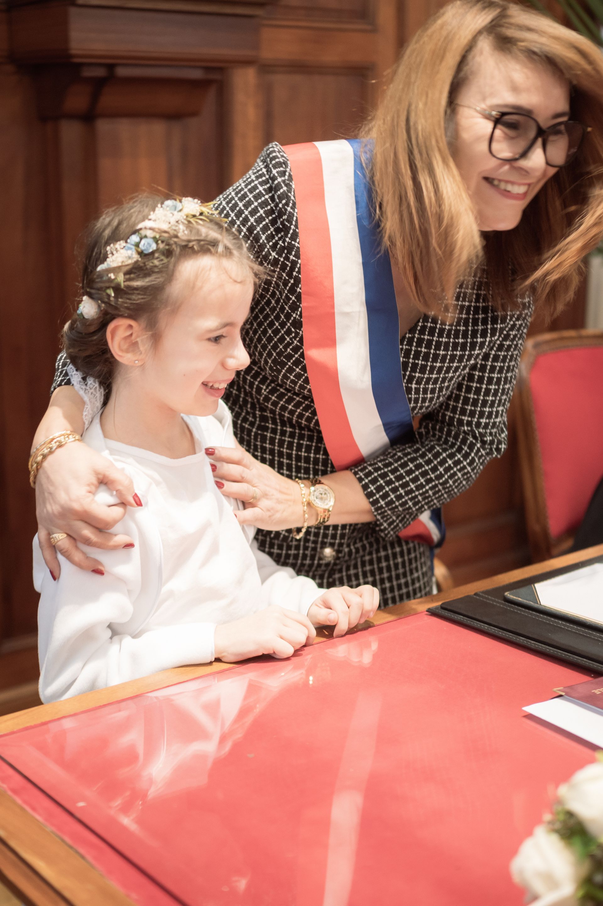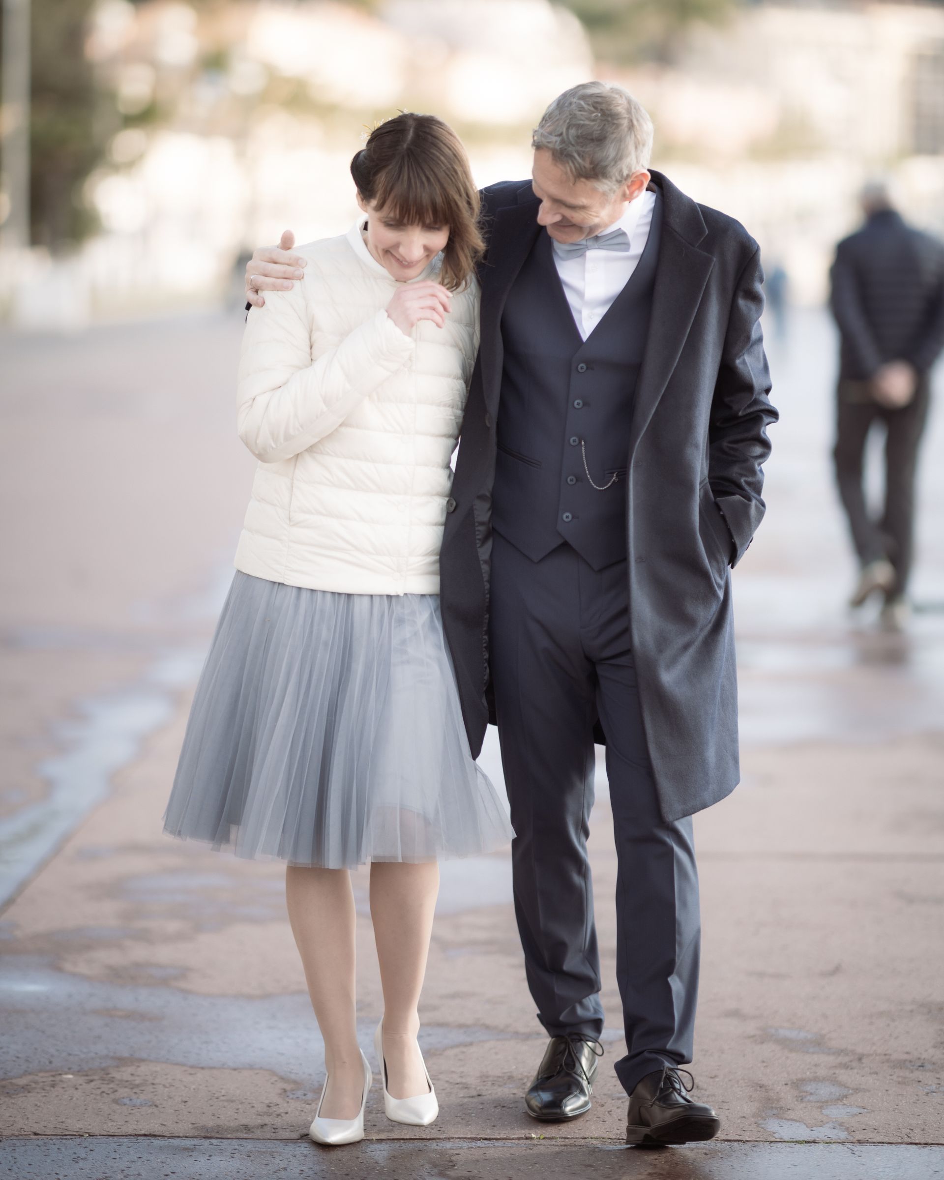 Pour ce mariage spécial, la jeune fille de la mariée a vécu un moment qu'elle n'oubliera jamais lorsqu'elle a été promue au rôle de maire pour la cérémonie. C'était un moment magique et le regard sur son visage était "priceless" comme on dit en anglais. Après la cérémonie, nous nous sommes rendus sur la promenade des Anglais, où la douce lumière de décembre éclairait l'heureux couple. Les images étaient, comme demandé, plutôt élégantes et modestes.