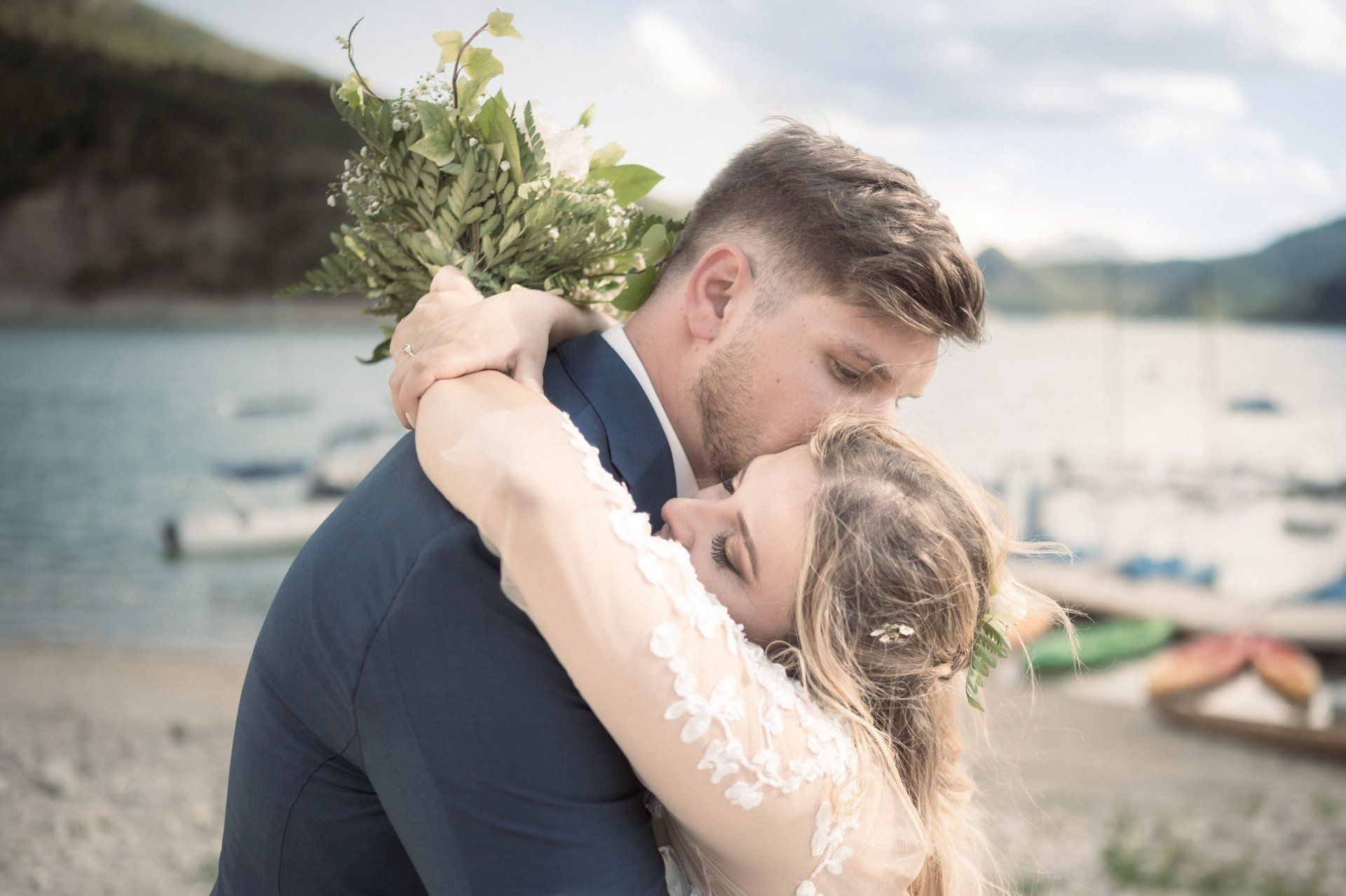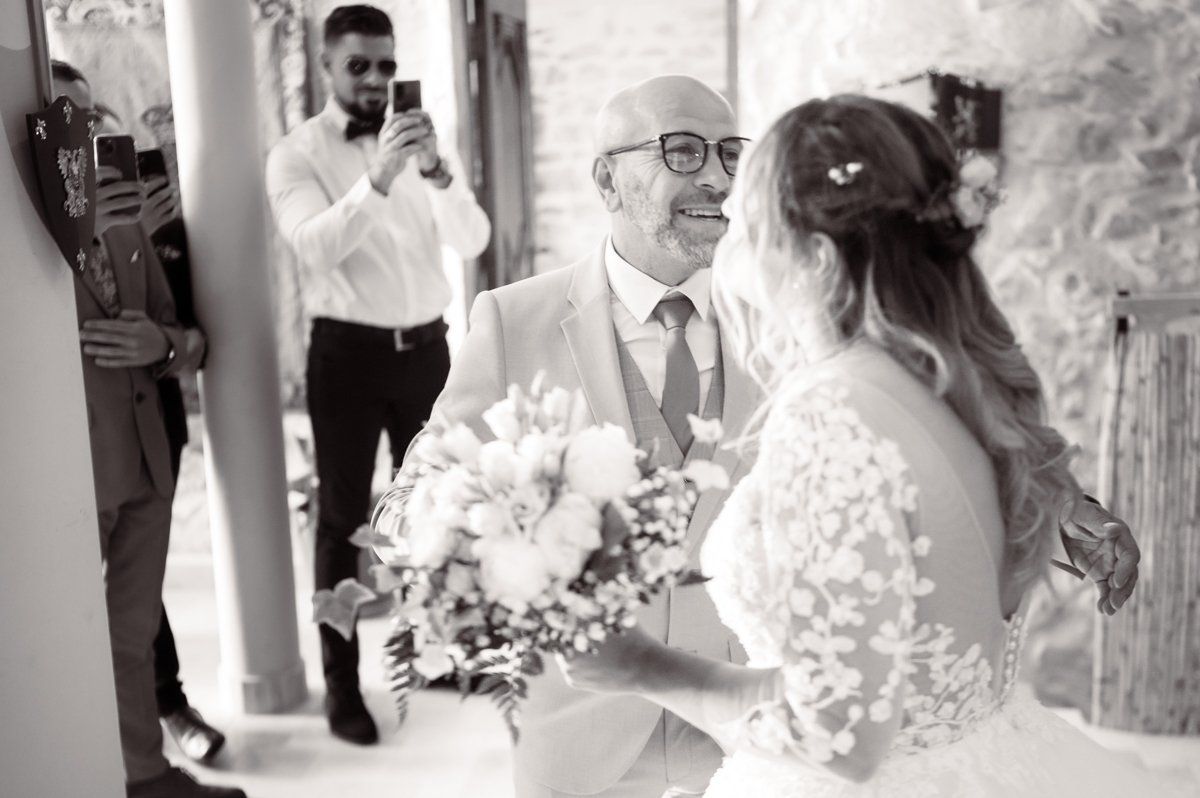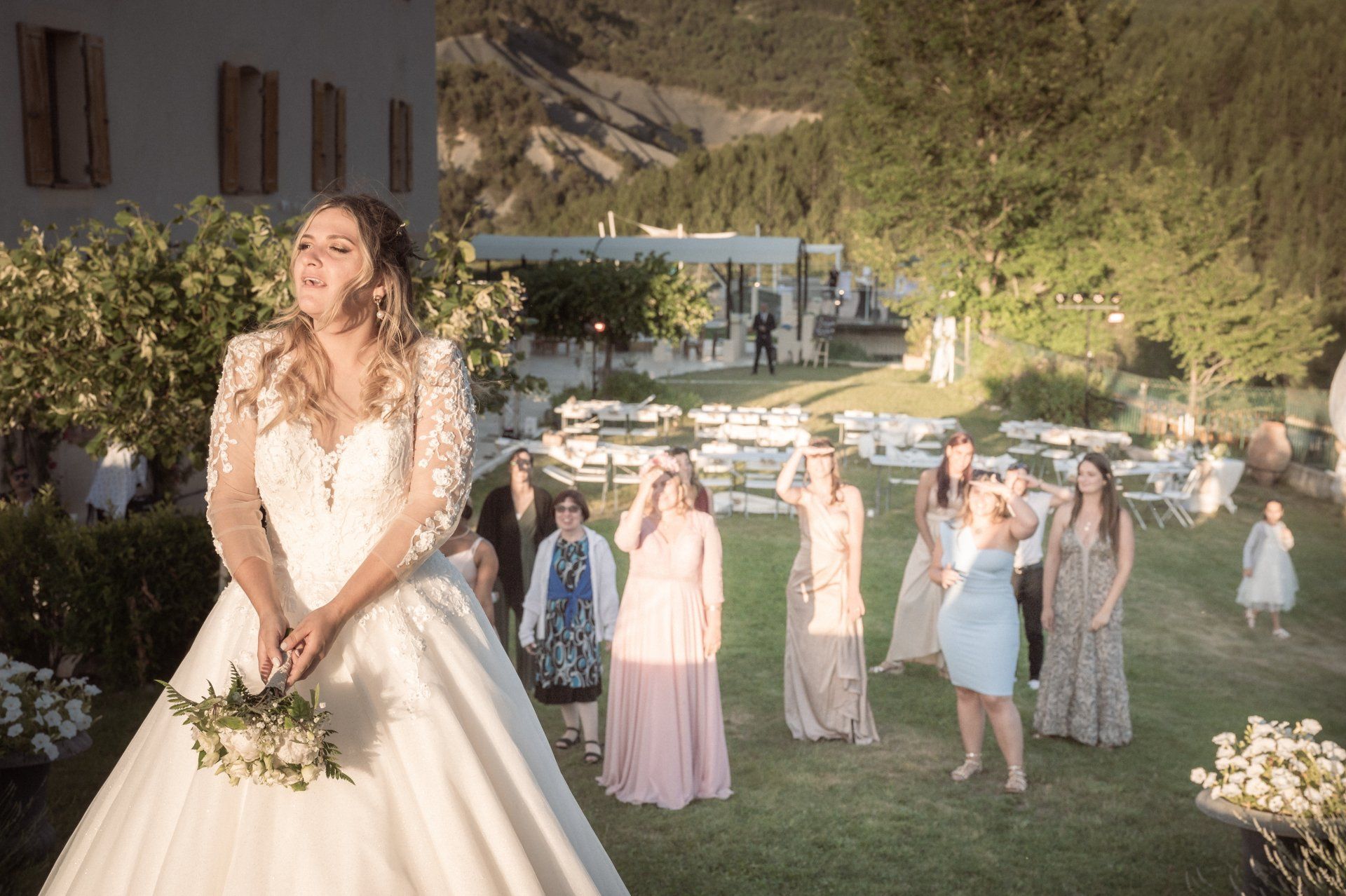 This was a stunning wedding held at Chateau de Meouilles, a spacious holiday villa in Saint André les Alpes, which is approximately two hours’ drive north-west from Nice (06000). The chateau is beautifully set in the Alpes of Haute-Provence of the Parc national de Marcantour (04179) and in proximity of the venue (less than 1km) is a lake (lac de Castillon) and the rural village of the Saint-André-les-Alpes, where the couples’ religious ceremony took place. This spot, surrounded by beautiful alpine rolling hills, is sublime and – combined with the sunset and a chapel on site, led to some spectacular imagery.