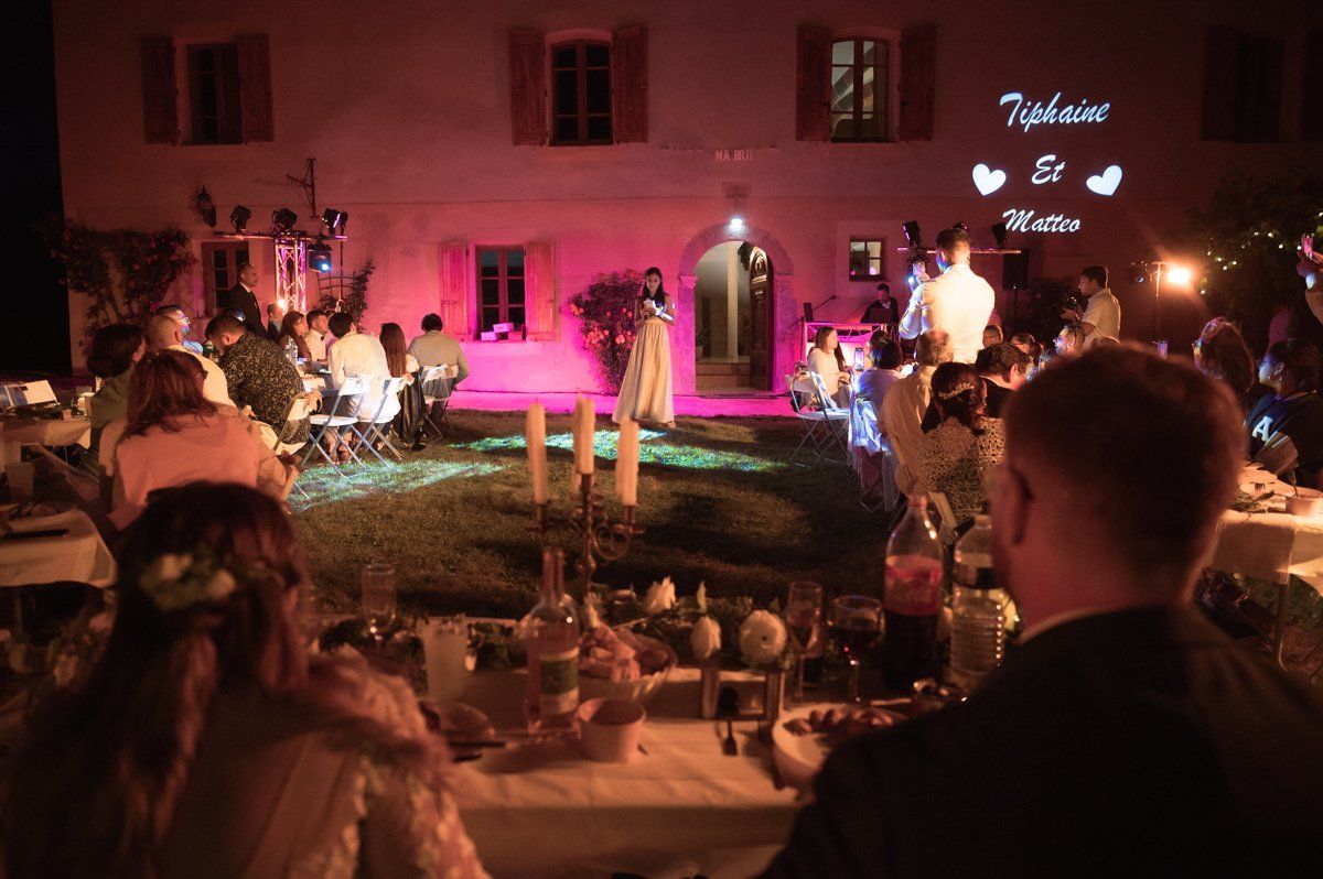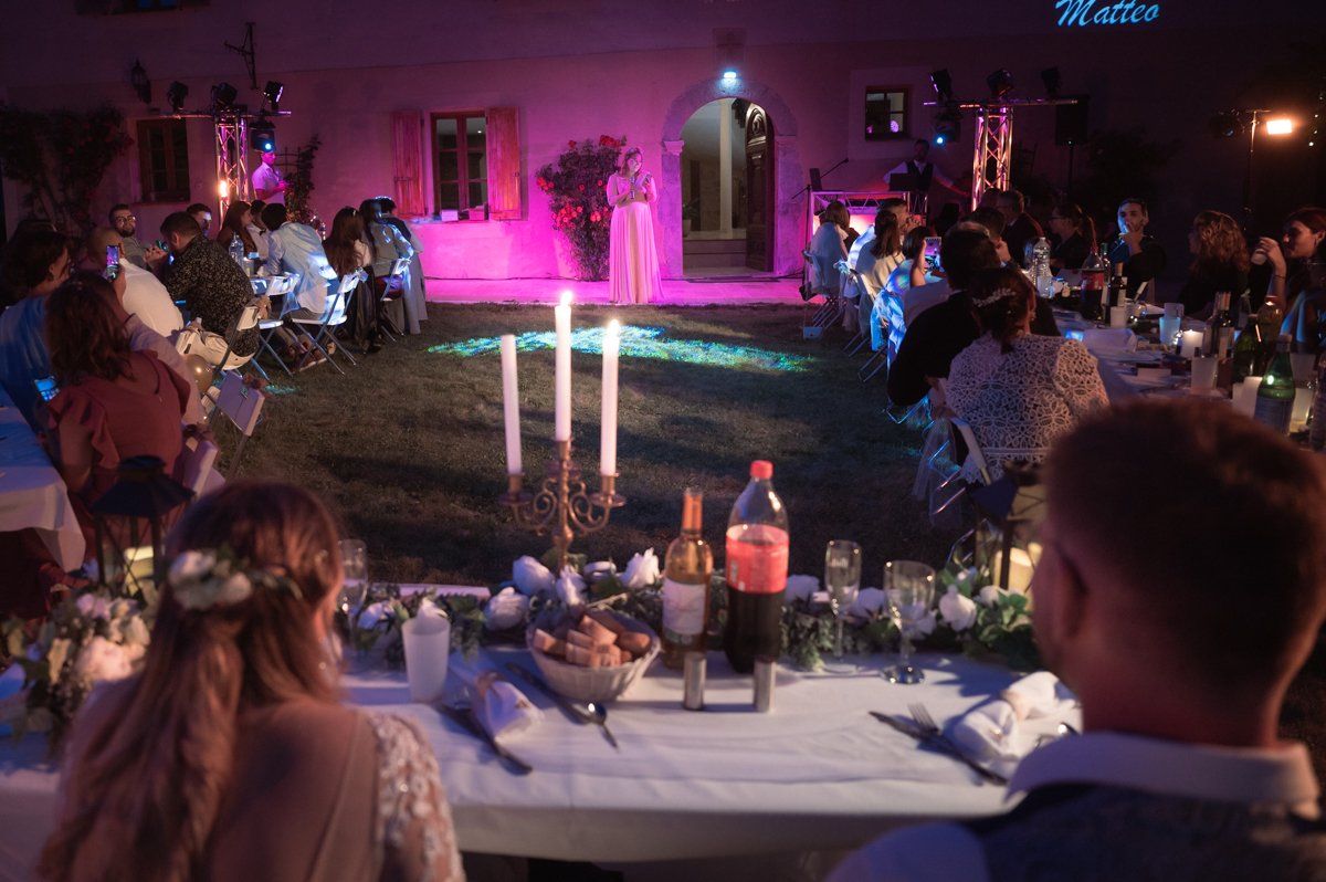 The lighting, music, and sound was provided by DfactoryEvents which is based in the Cannes area and did an amazing job of lighting and music. They had a special lighting set-up planned to match the mood of the first dance. I don’t know too much about event lighting but set-up and stands were non-obtrusive, the lighting itself was perfect for the space, energy, and mood, and there was smoke machines and two pyrotechnic machines that threw out giant sparks during the first dance. These guys were super professional, super friendly, and even lent me an extension cable so I could recharge my car.