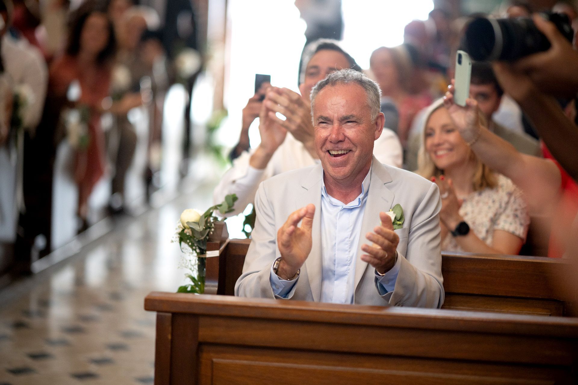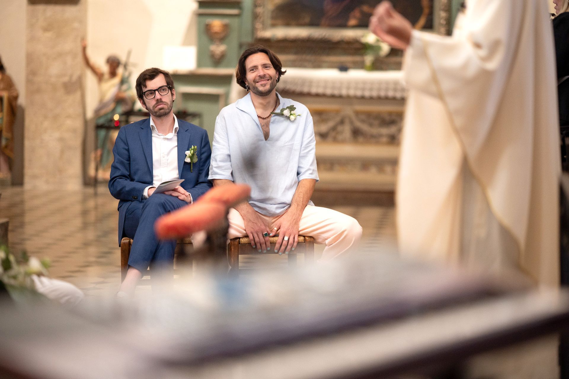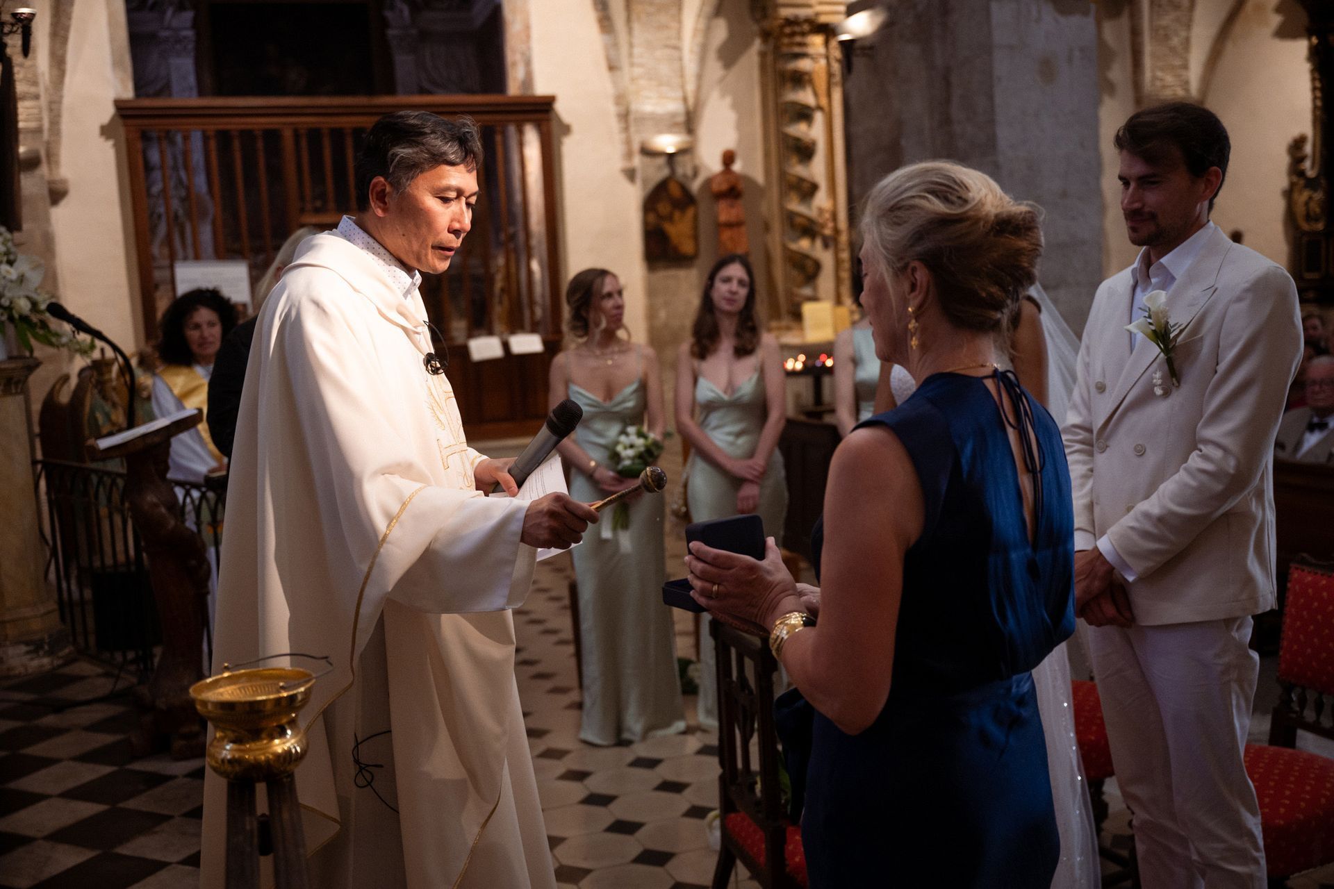 La belle lumière dorée du soleil se reflétait sur les pierres couleur miel et illuminait les invités réunis dans ce petit espace. C'est l'une des salles de mariage civil les plus uniques que j'ai photographiées, et cet endroit dégage quelque chose de merveilleusement optimiste, sachant que ses murs ont été témoins de milliers de cérémonies de ce type au cours des siècles (même si le bâtiment lui-même n'est utilisé à des fins civiles que depuis le XVIIe siècle).
