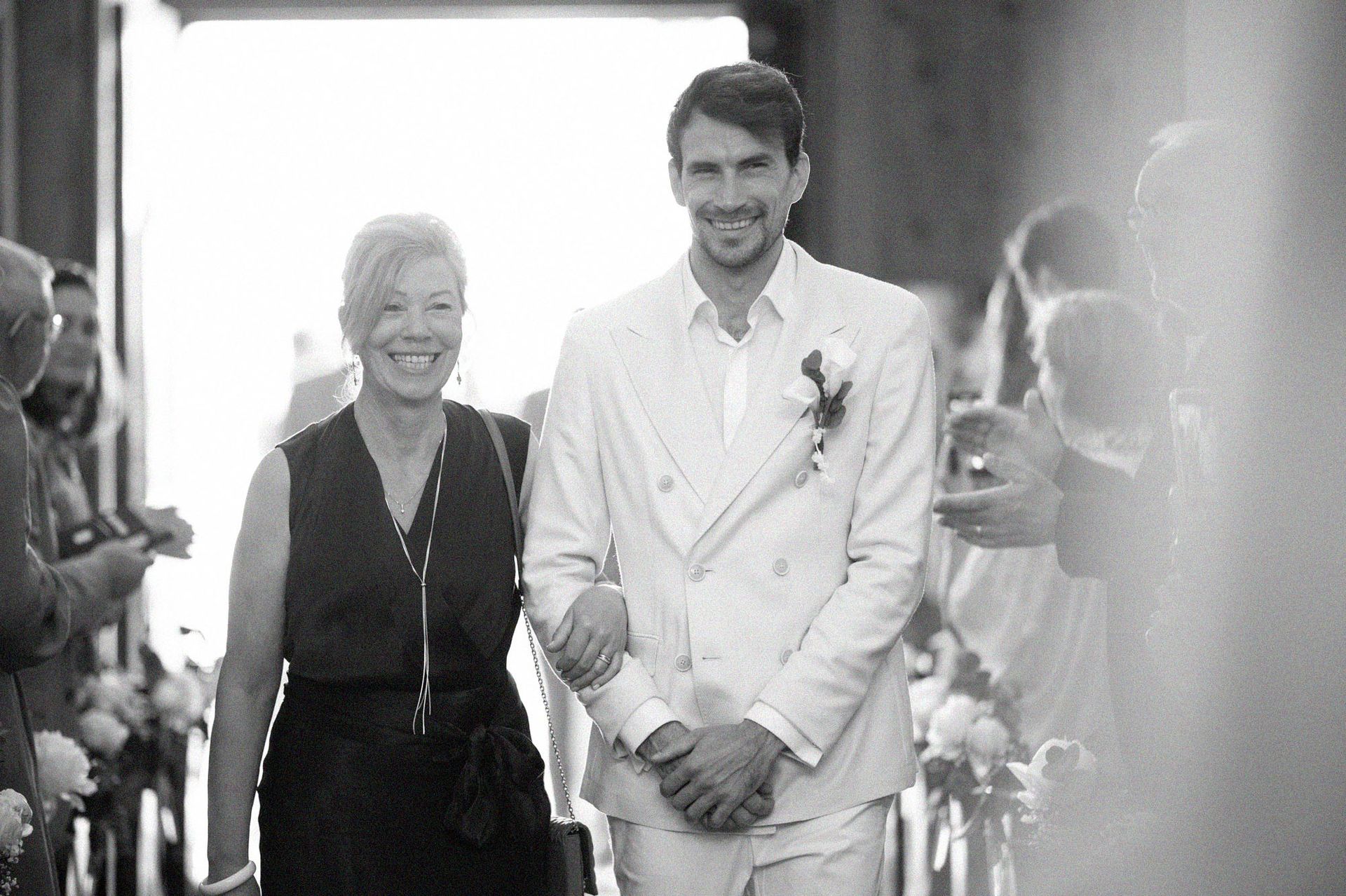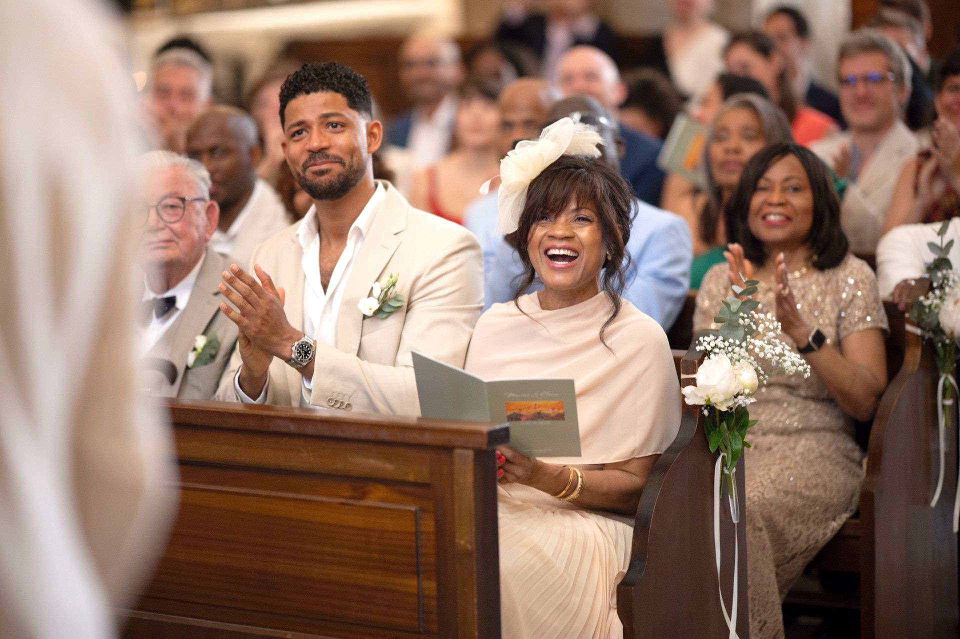 Après la cérémonie, les festivités se sont poursuivies à l'extérieur, où l'atmosphère était pétillante et où les couleurs des tenues des invités resplendissaient sous le magnifique soleil estival.